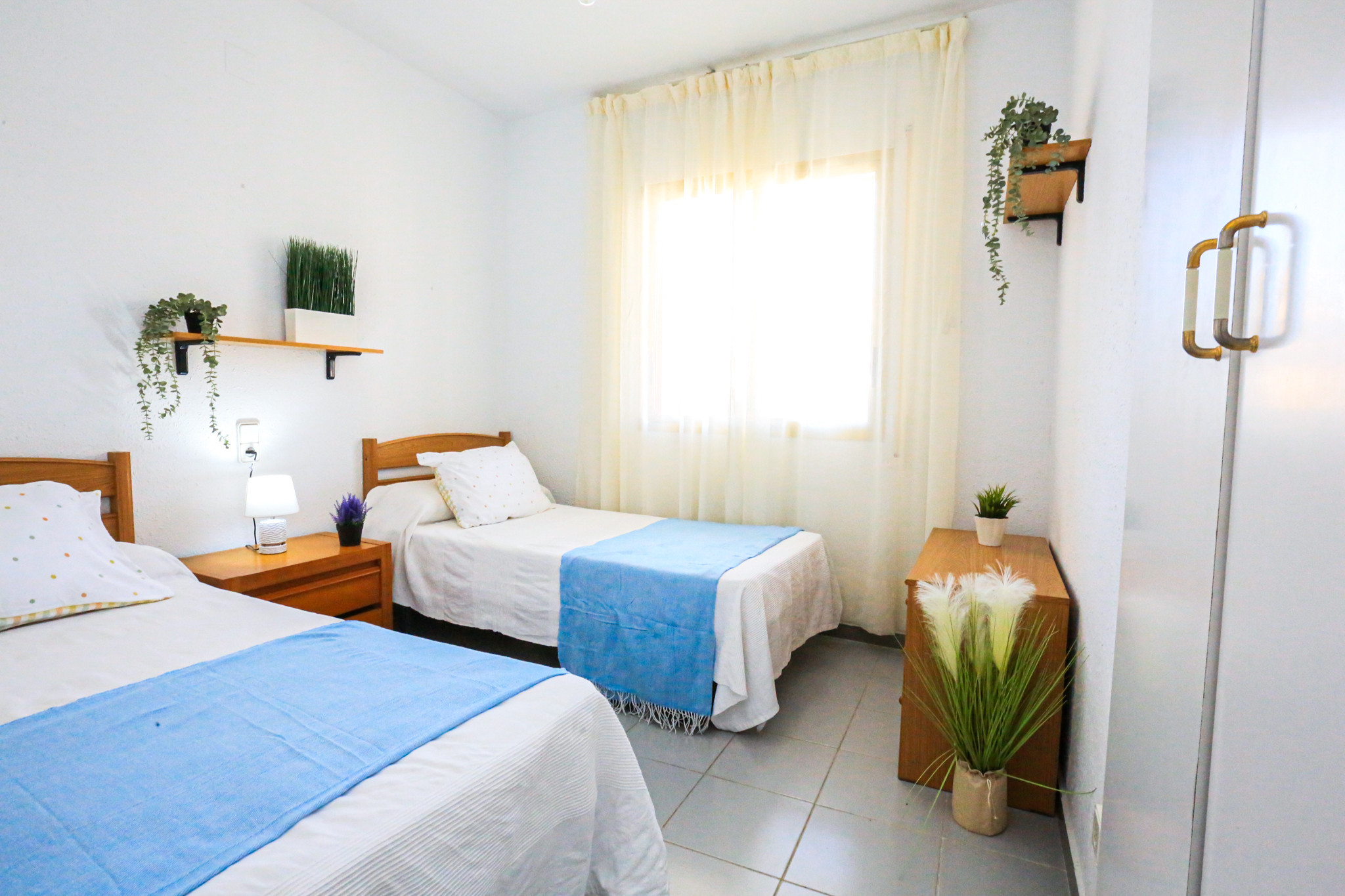 La ubicación es excelente. Sin tener que cruzar carretera para ir a la playa. A 10 minutos paseando del puerto y a 15 del barrio antic. Que tenga parking cubierto se agradece y está poco publicitado. El mantenimiento de la urbanización es muy bueno, los jardines en perfecto estado. La piscina limpia y amplia. Los colchones están muy bien, la terraza muy espaciosa.
