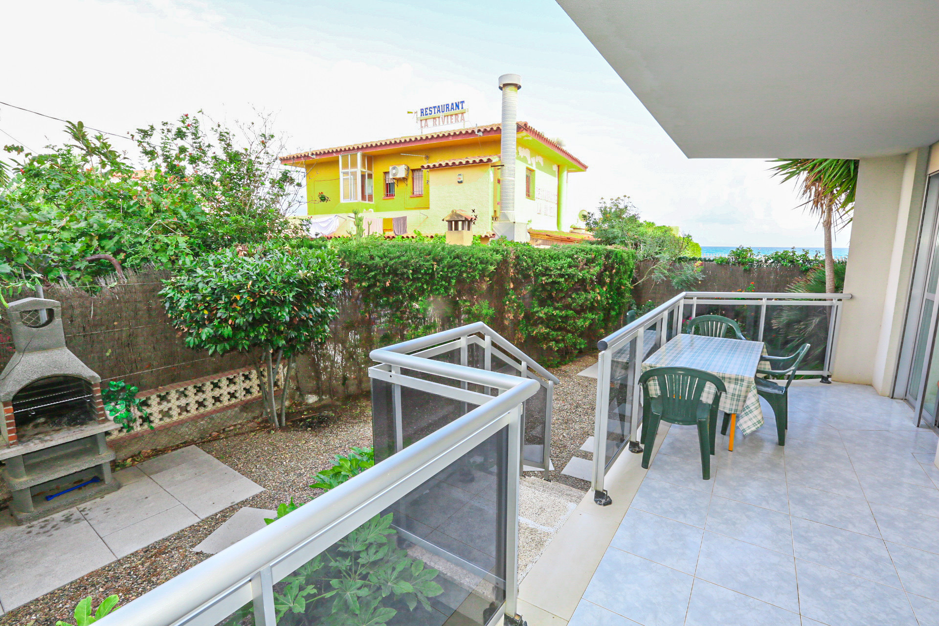 Magnífico apartamento en planta baja en primera línea de playa en Miami Platja. El alojamiento vacacional la Riviera es un apartamento con 2 dormitorios dobles, 1 baños con bañera y un aseo. La cocina del apartamento La Riviera es moderna y está equipada con nevera, horno, microondas y todos los utensilios de cocina necesarios para toda la familia. El salón comedor es bonito y bien decorado y cuenta con salida directa a la terraza en planta baja donde encontramos uun bonito jardín privado con sillas, mesa y barbacoa.