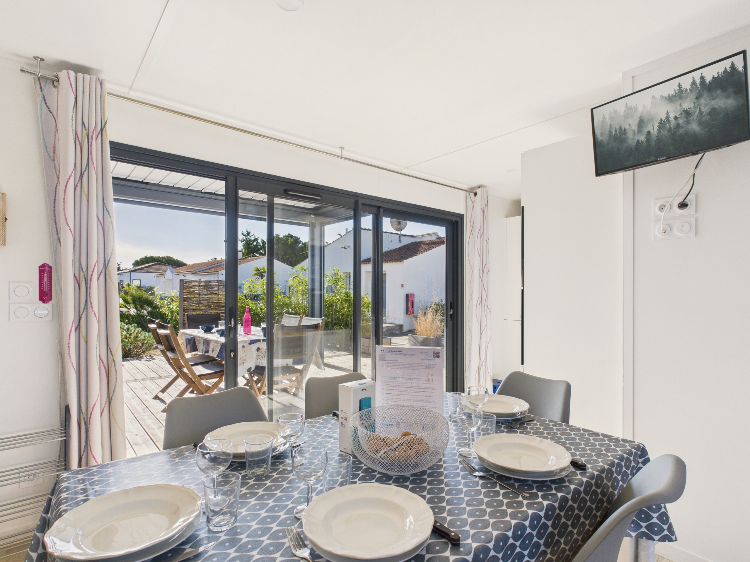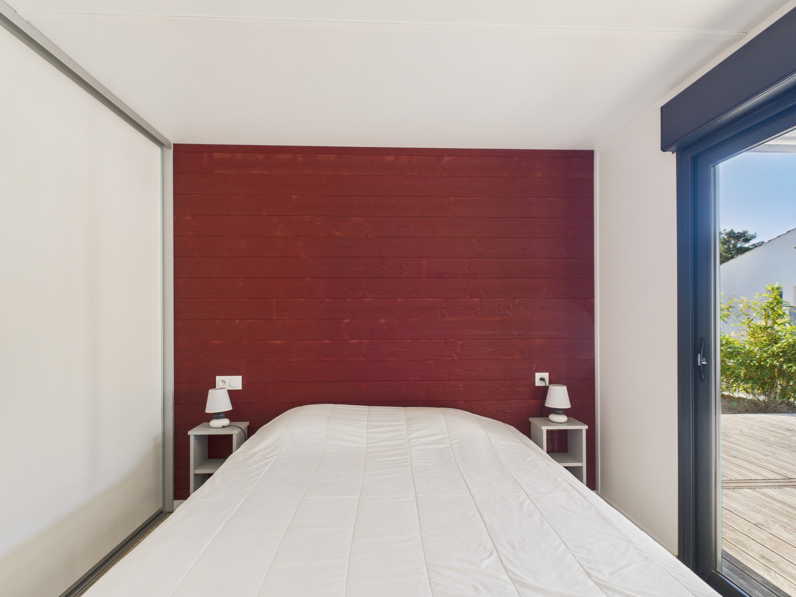 Récent et très bien aménagé, cette maison affirme son charme avec sa façade, ses grandes baies, son design actuel et sa spacieuse terrasse bois. Situé dans un cadre naturel et boisé, proche de la mer, il reçoit jusqu’à 6 personnes pour d’agréables vacances en famille. Ses 3 chambres disposent d’une literie de qualité. Dans la lumineuse pièce de vie donnant directement la terrasse, un canapé et un espace repas permettent de confortablement s’installer. La cuisine à l’américaine est parfaitement équipée pour vos séjours familiaux. Le mobilier de jardin permet de profiter de la terrasse et de la vue sur les arbres environnants. Décorée avec goût, dans un style sobre et actuel, la location est très agréable à vivre. La wifi, les espaces de jeux et l’espace aquatique du Domaine de Saint Hilaire, avec piscine couverte et piscine chauffée à 28 degrés, sont à disposition des vacanciers. Les chaudes soirées d'été, vous pourrez cuisiner sur la plancha gaz après avoir profiter des piscines.